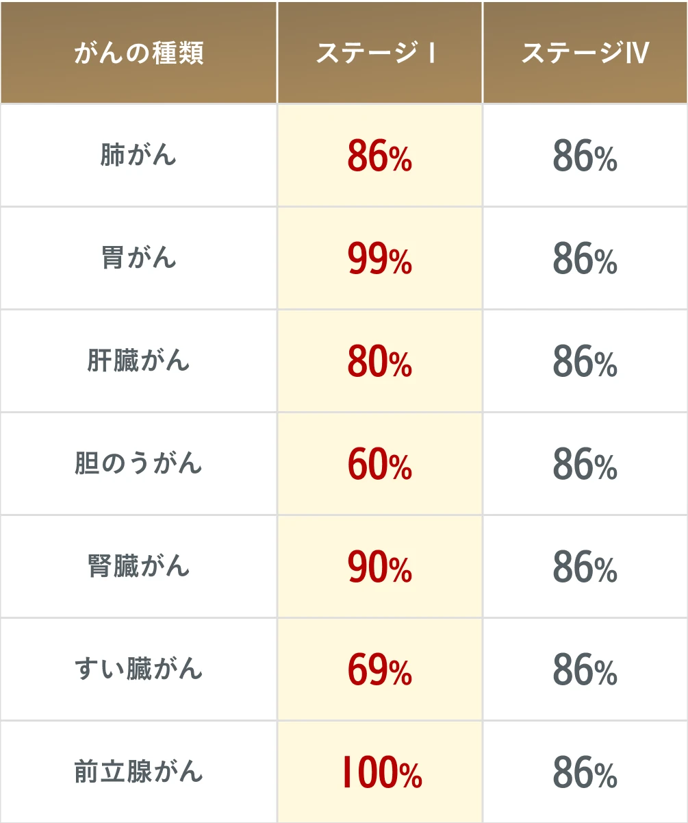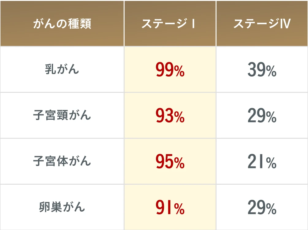 がんは早期の発見をすることで、生存率が大幅にあがります