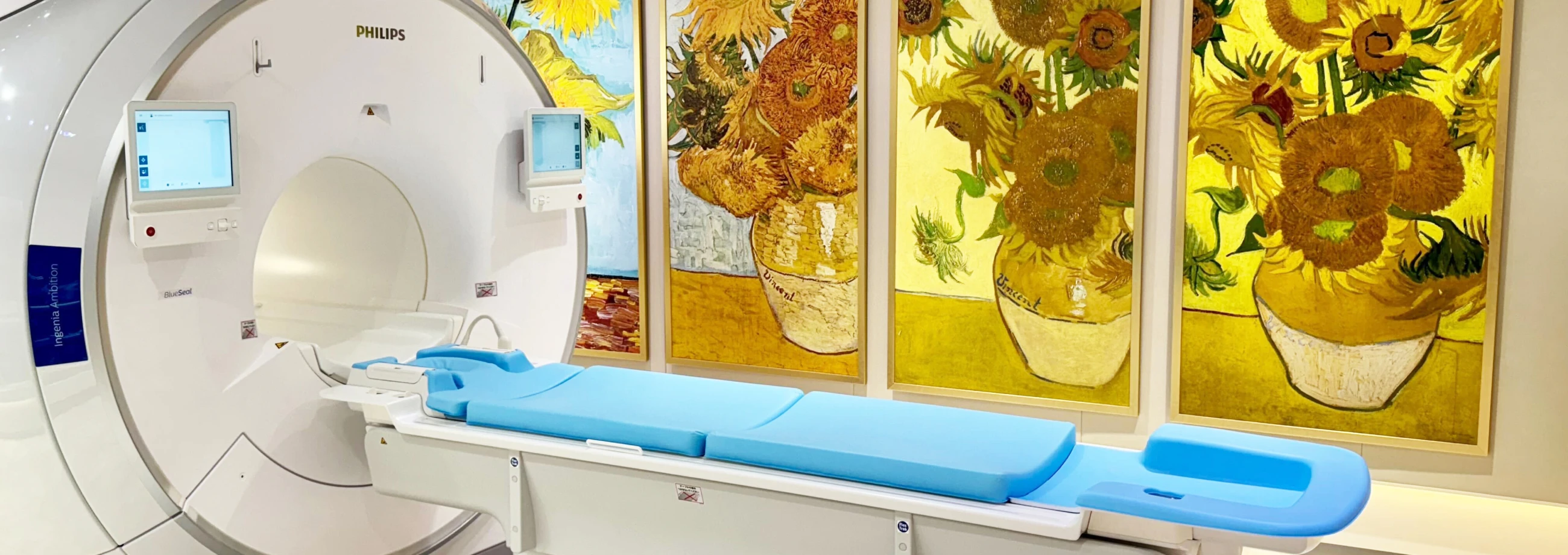 MRI 検査中には映像と音楽もご体験可能。閉所恐怖症の緩和にも効果的です。